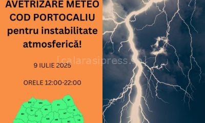 Primăria Municipiului Oltenița a transmis miercuri, 9 iulie, o atenționare de Cod Portocaliu valabilă între orele 12:00 și 22:00, vizând estul județului Călărași, inclusiv municipiul Oltenița....