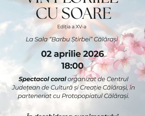 Călărășenii sunt invitați joi, 2 aprilie 2026, la un eveniment de suflet organizat în preajma sărbătorilor pascale. Spectacolul coral „Vin Floriile cu soare”, ajuns la cea de-a XV-a ediție, va avea loc de la ora 18:00, în Sala „Barbu Știrbei” a Centrului