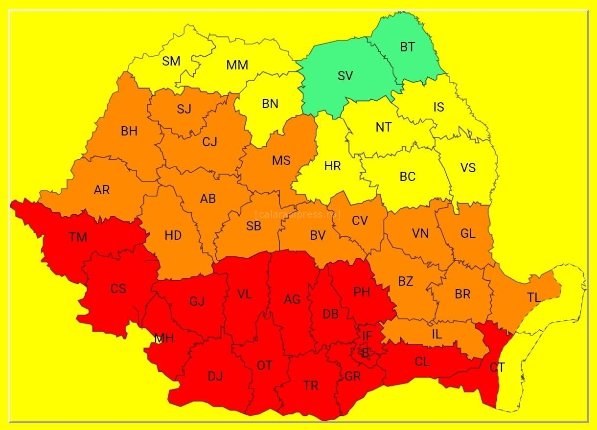 Alertă meteo: Cod roșu și portocaliu de caniculă — Județul Călărași sub influența unui val intens de căldură