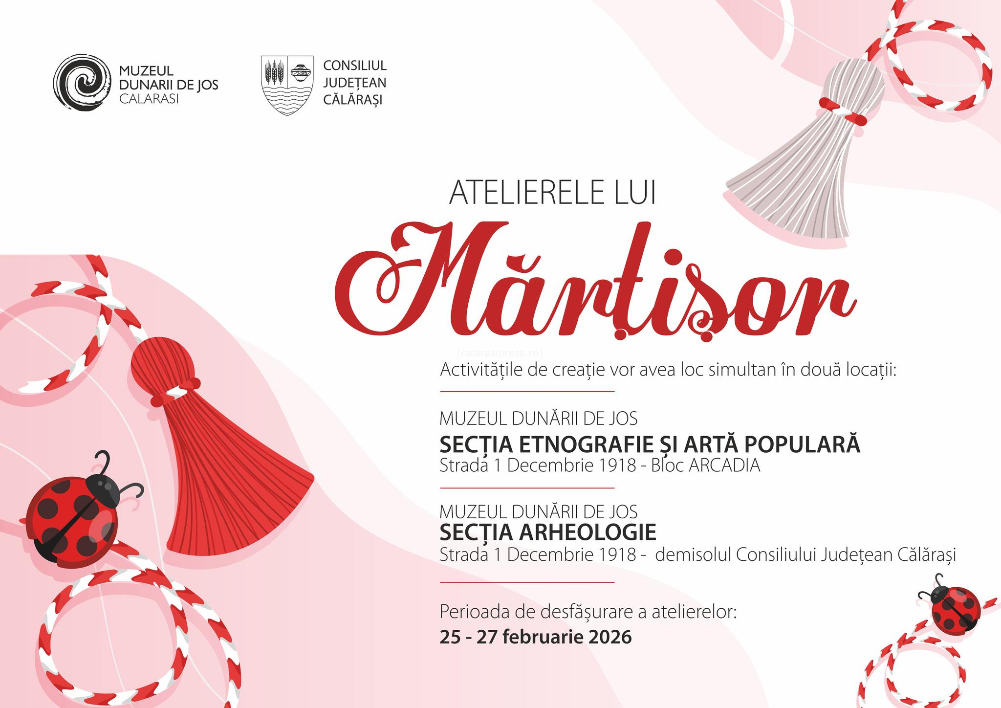 Muzeul Dunării de Jos dă startul atelierelor dedicate mărțișorului, în cadrul unei noi ediții a proiectului educațional „Atelierele lui Mărțișor”. Evenimentul este programat în perioada 25–27 februarie și se adresează copiilor dornici să descopere tradițiile românești și să își creeze propriul simbol al primăverii.