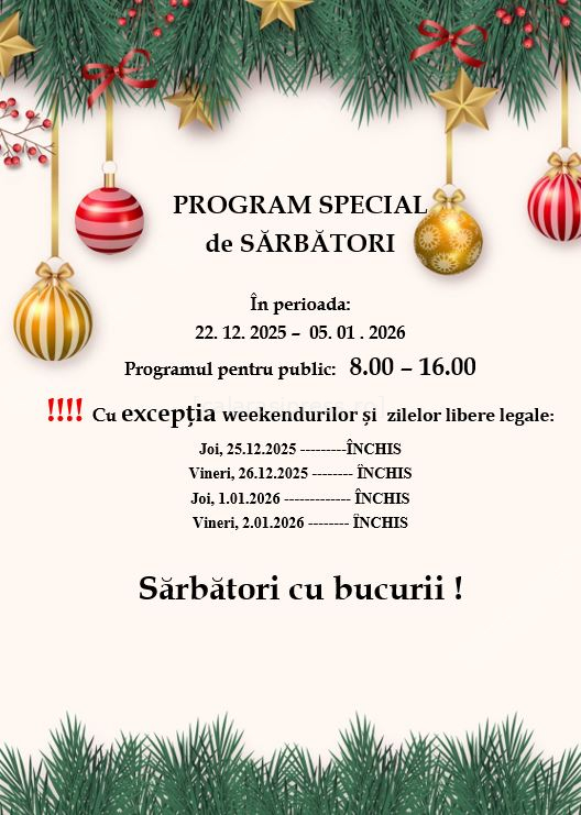Biblioteca Județeană Călărași anunță un program special de funcționare în perioada sărbătorilor de iarnă, valabil în intervalul 22 decembrie 2025 – 5 ianuarie 2026.