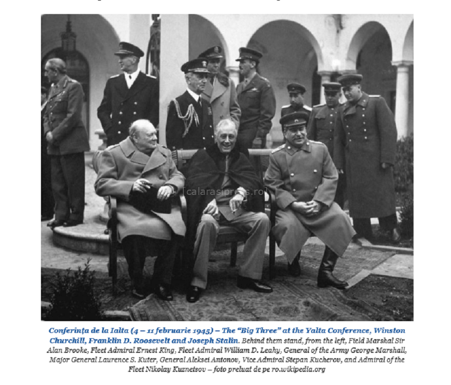 1945 – Au început lucrările Conferinței de la Ialta (4-11 februarie 1945 – Crimeea), în cadrul căreia au fost discutate probleme legate de configurarea lumii postbelice și adoptată „Declaraţia asupra Europei eliberate”. Conferința de la Ialta este asociată cu împărțirea sferelor de influență intre marile puteri.