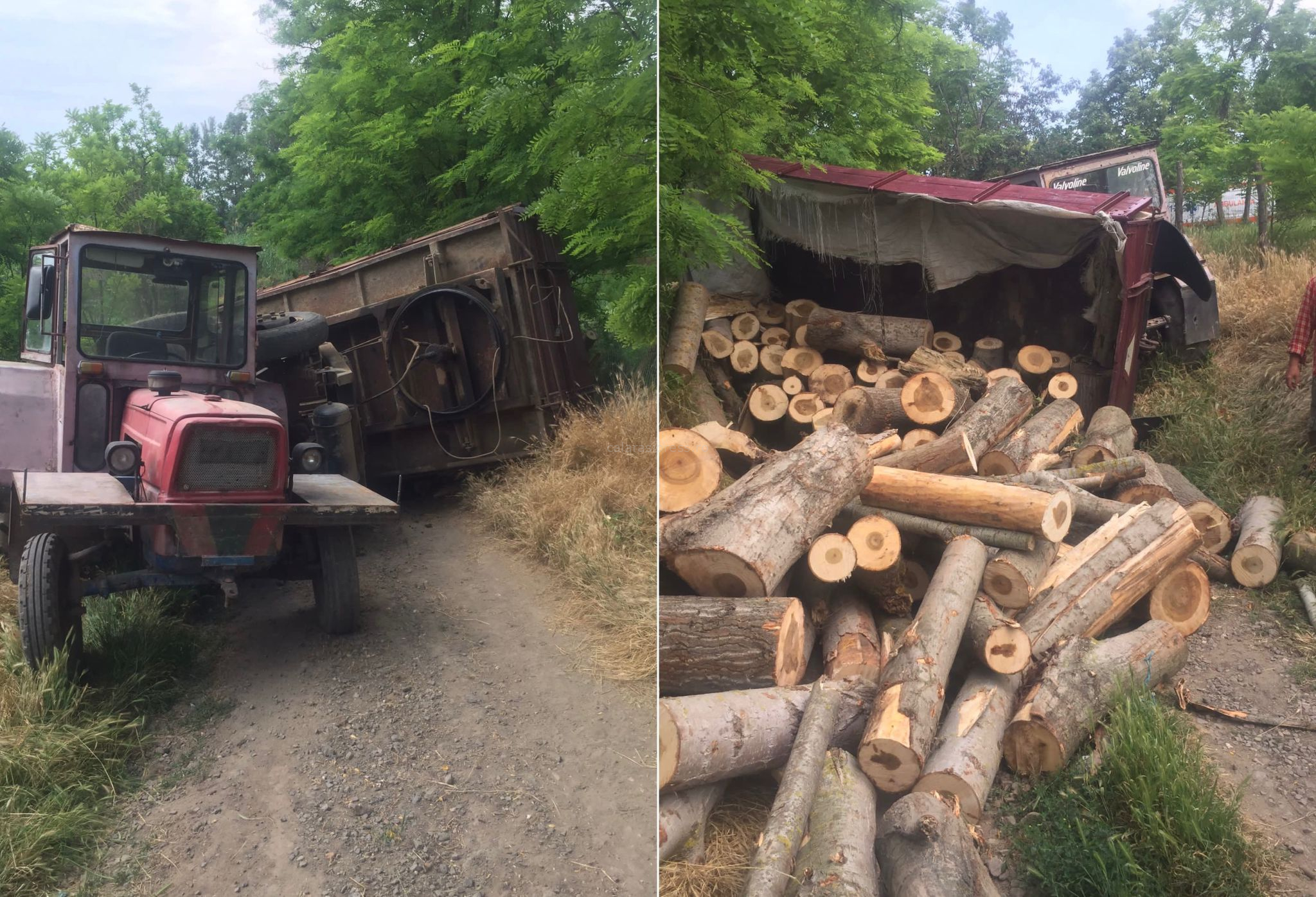 Bărbat prins sub o remorcă încărcată cu lemne în Ciocănești