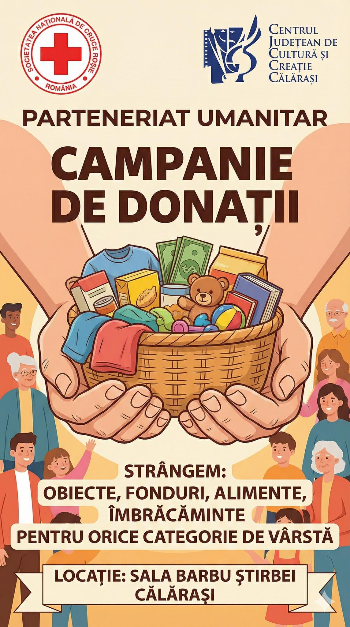 Centrul Județean de Cultură și Creație Călărași deschide luna decembrie cu o inițiativă dedicată solidarității. Instituția devine, pe tot parcursul lunii, centru de colectare a donațiilor pentru familiile nevoiașe, în cadrul campaniei „Dăruim Împreună”, organizată în parteneriat cu Crucea Roșie – Filiala Călărași.