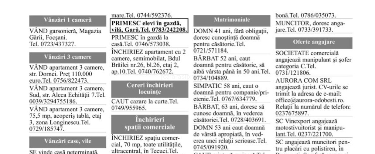 Anunțuri diverse – pierderi acte, obiecte găsite, colaborări, evenimente private.