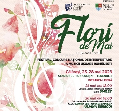 În perioada 25-28 mai 2023, Centrul Județean de Cultură și Creație Călărași organizează Festivalul Flori de Mai ediția XXXIII, eveniment ce va avea loc pe stadionul municipal Ion Comsa.