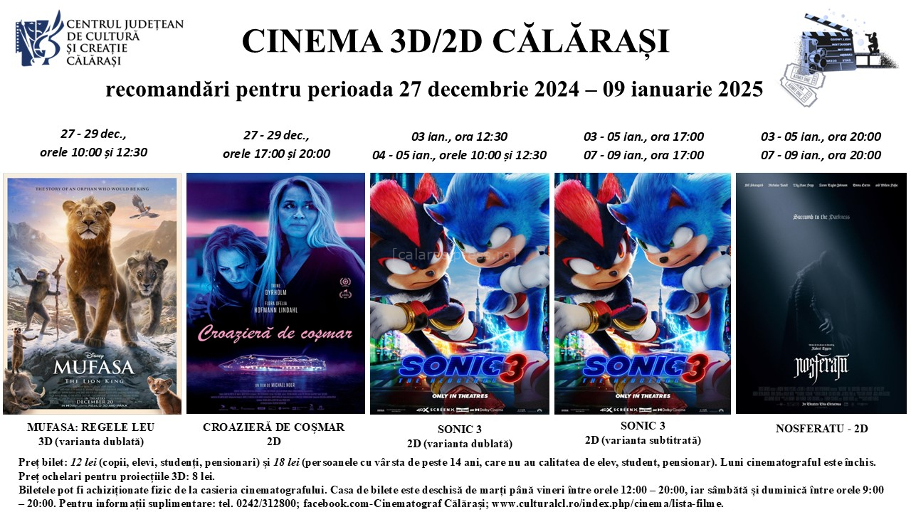 • 03-05.01.2025, ora 12.30 (variantă dublată)