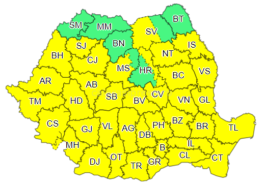 Cod Galben de vânt foarte puternic, valabil până la ora 23.