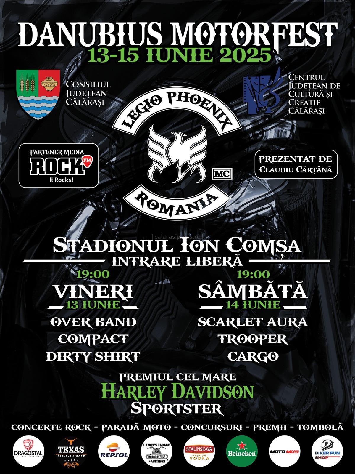 Organizat de Legio Phoenix MC România, în parteneriat cu Consiliul Județean Călărași și Centrul Județean de Cultură și Creație Călărași, festivalul promite o experiență completă: muzică live, show-uri moto, tombolă cu premii și o atmosferă de neuitat.