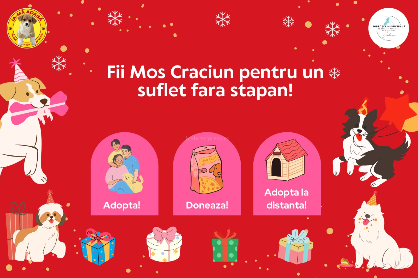 Fii Moș Crăciun pentru un suflet fără stăpân! Eveniment special organizat de Serviciul Pentru Gestionarea Câinilor Fără Stăpân Călărași
