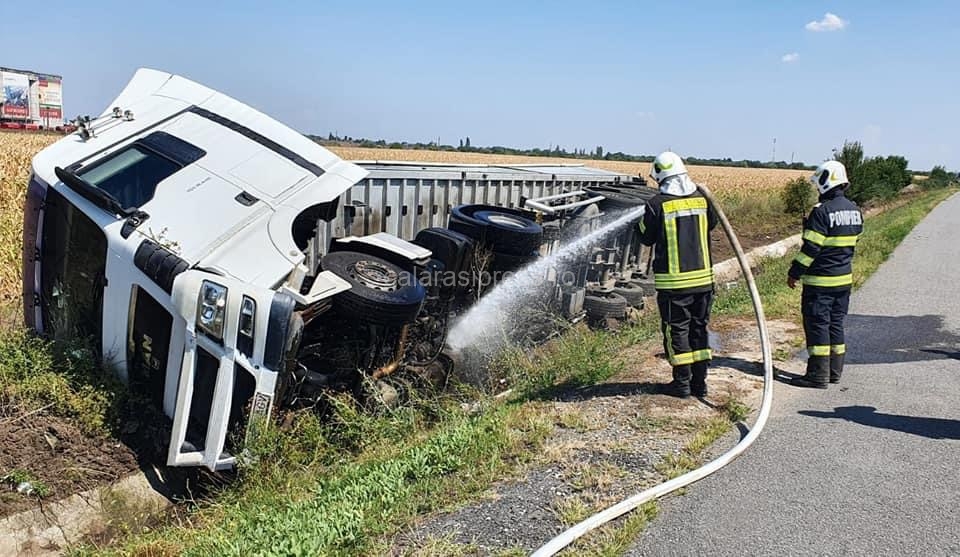 ISU Călărași: Autotren răsturnat pe Autostrada Soarelui, km 45, sensul spre București