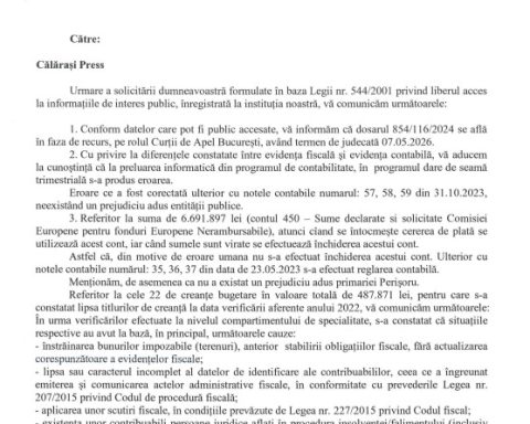 Un control al Curtea de Conturi a României la UATC Perișoru a scos la iveală o realitate greu de ignorat: taxe necalculate, diferențe mari în evidențe și milioane de lei trecute în acte fără să existe. După apariția acestor constatări, Primăria Perișoru