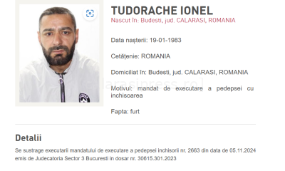 Ionel Tudorache, în vârstă de 41 de ani, din orașul Budești, județul Călărași, a fost dat în urmărire națională de autorități, potrivit unui anunț publicat pe...