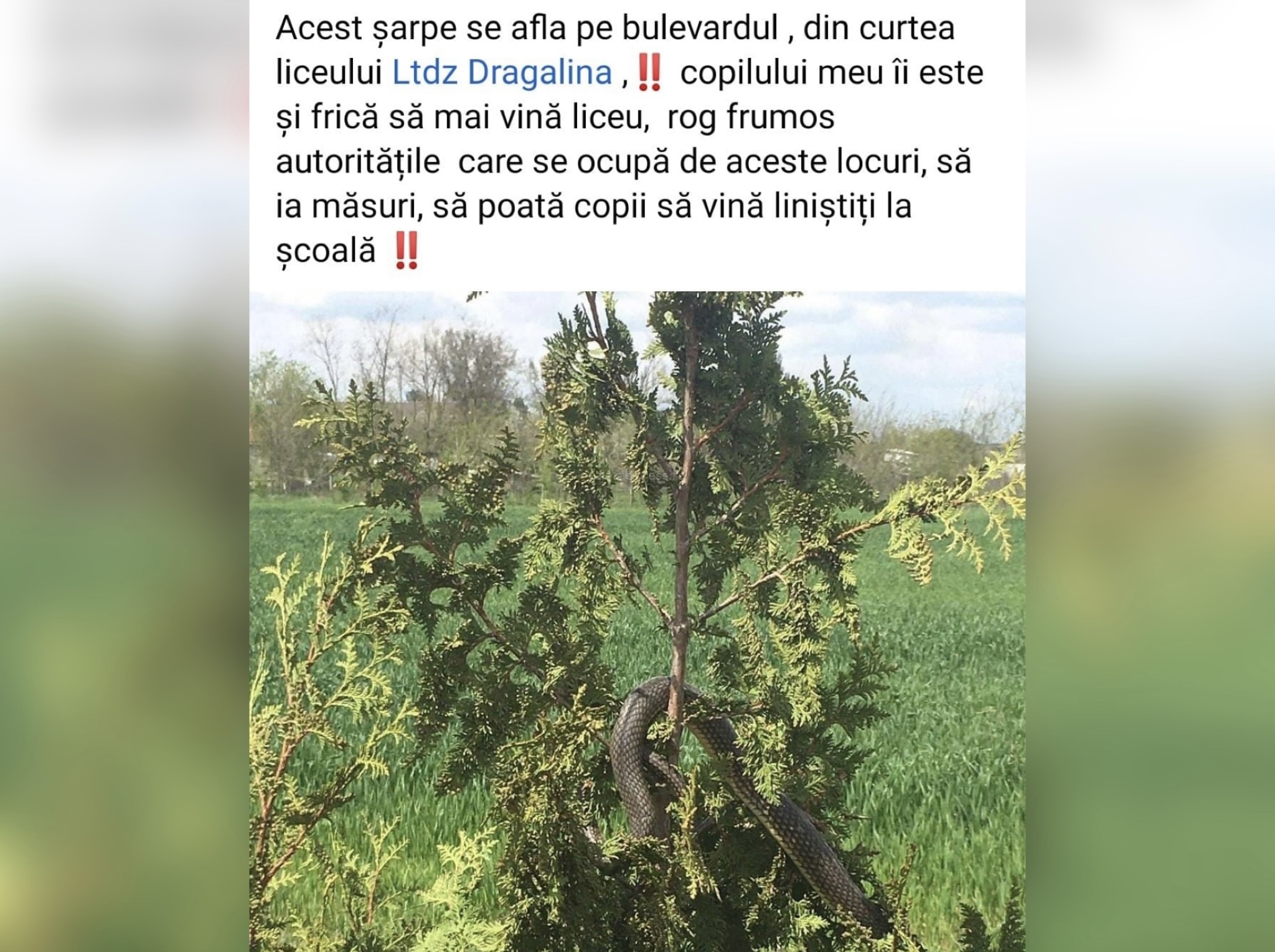 Panică în curtea liceului din Dragalina: Un șarpe impresionant a fost văzut de elevi
