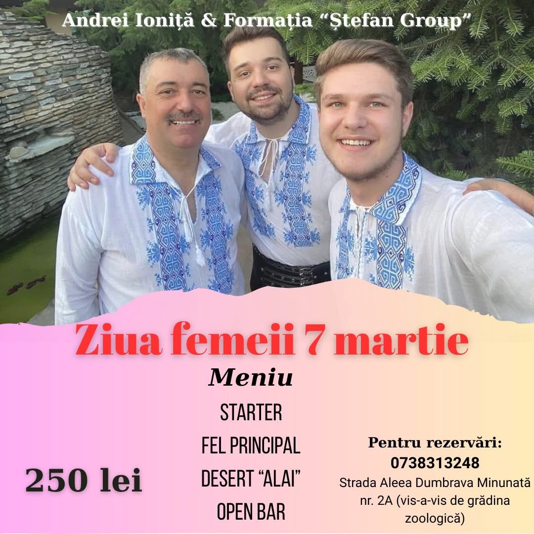 Ziua Femeii va fi sărbătorită în avans, vineri, 7 martie, într-un cadru elegant, la Restaurant Alai, din Călărași. Evenimentul promite o seară dedicată doamnelor și domnișoarelor, cu muzică live, atmosferă festivă și un meniu atent pregătit pentru această ocazie specială.