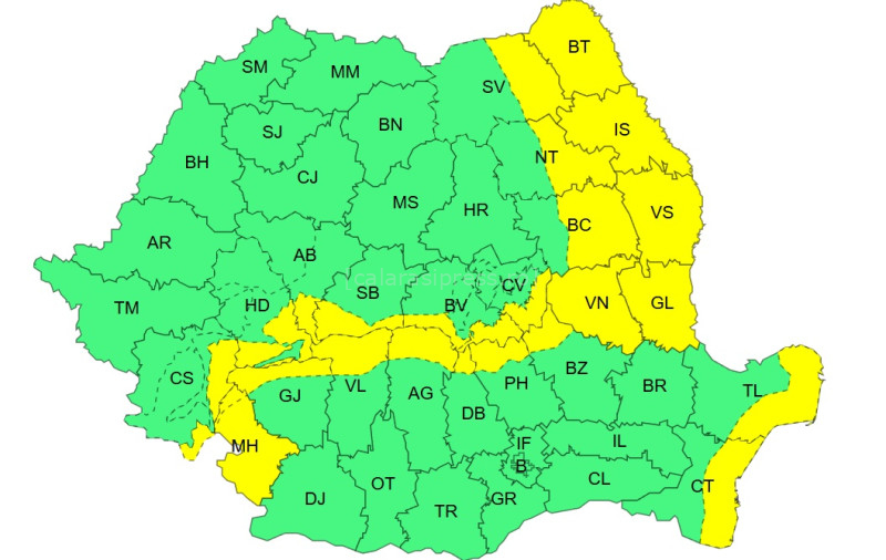 Administrația Națională de Meteorologie (ANM) a emis o informare de vreme severă și mai multe avertizări cod galben și portocaliu, valabile în intervalul 26 decembrie, ora 10 – 29 decembrie, ora 10.