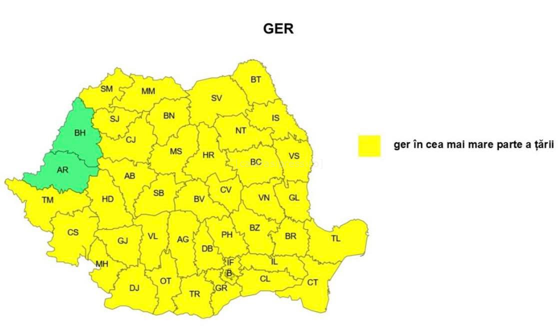 Administrația Națională de Meteorologie a emis o atenționare meteorologică Cod Galben de ger, valabilă la nivel național, inclusiv pentru județul Călărași. Potrivit informării transmise de Instituția Prefectului – Județul Călărași, intervalul vizat este 17 ianuarie, ora 10:00 – 21 ianuarie, ora 10:00.