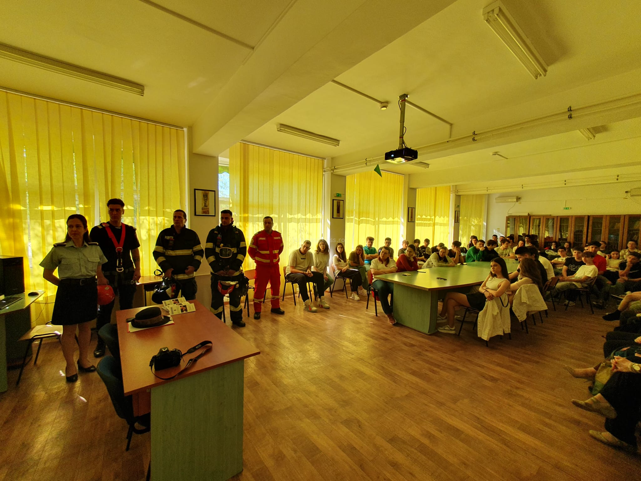 Pompierii militari călărăşeni prezintă oferta educațională în al optulea liceu din județ. De data aceasta la Colegiul Național „Barbu Știrbei” Călărași