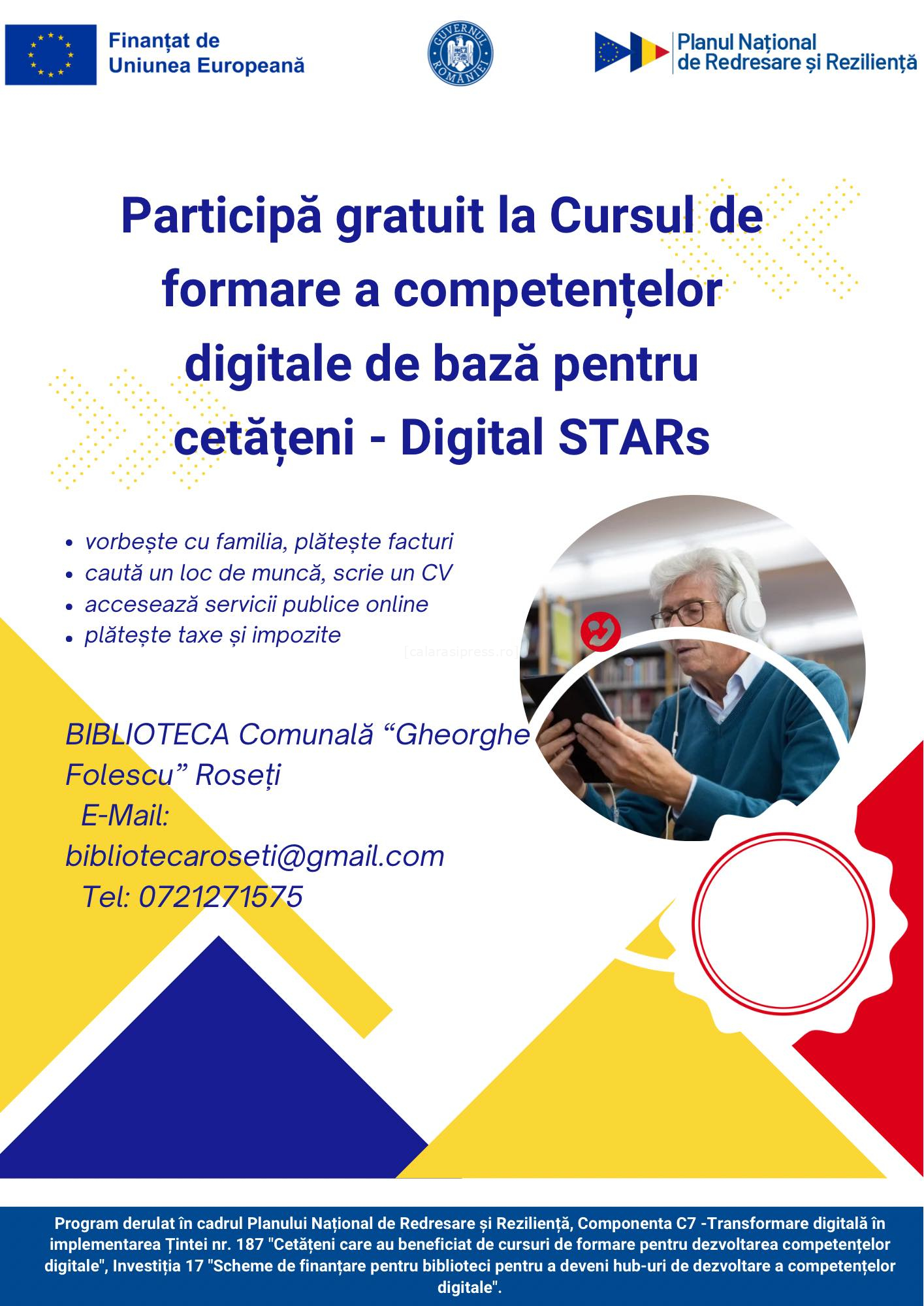 Participarea este 100% gratuită, costurile fiind susținute cu sprijinul Primăriei Roseți, în cadrul unui program finanțat prin fonduri europene, care urmărește creșterea nivelului de alfabetizare digitală în comunitățile locale.