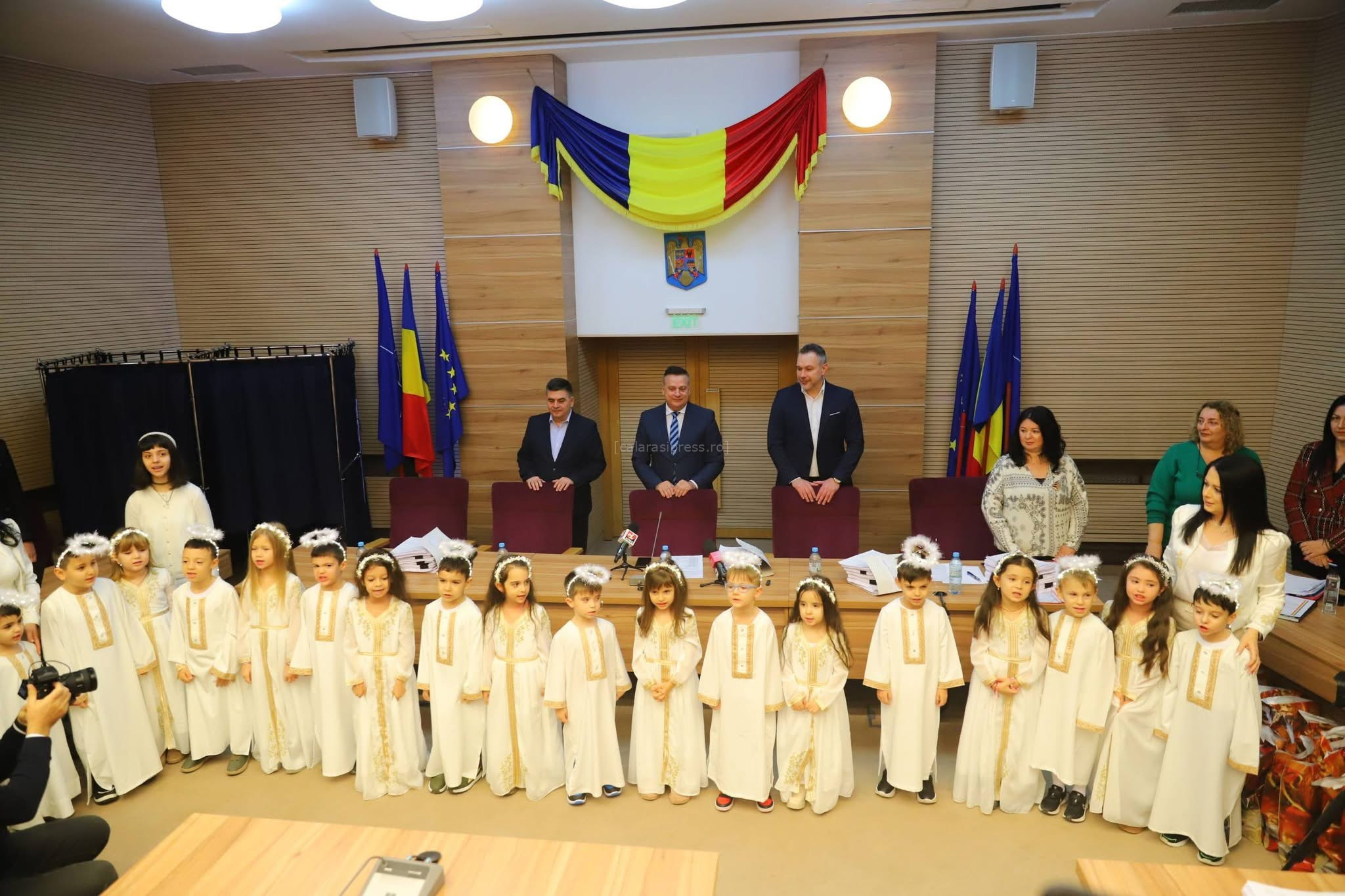Joi, 18 decembrie a.c., ședința ordinară a Consiliului Județean Călărași a fost specială. Zeci de copiii de toate vârstele și-au făcut apariția în sala de ședințe a instituției publice pentru a delecta persoanele prezente cu momente caracteristice acestei perioade.