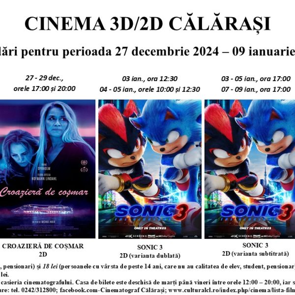Dată și ore de rulare: 13-15.12.2024 – ora 20.00 17-19.12.2024