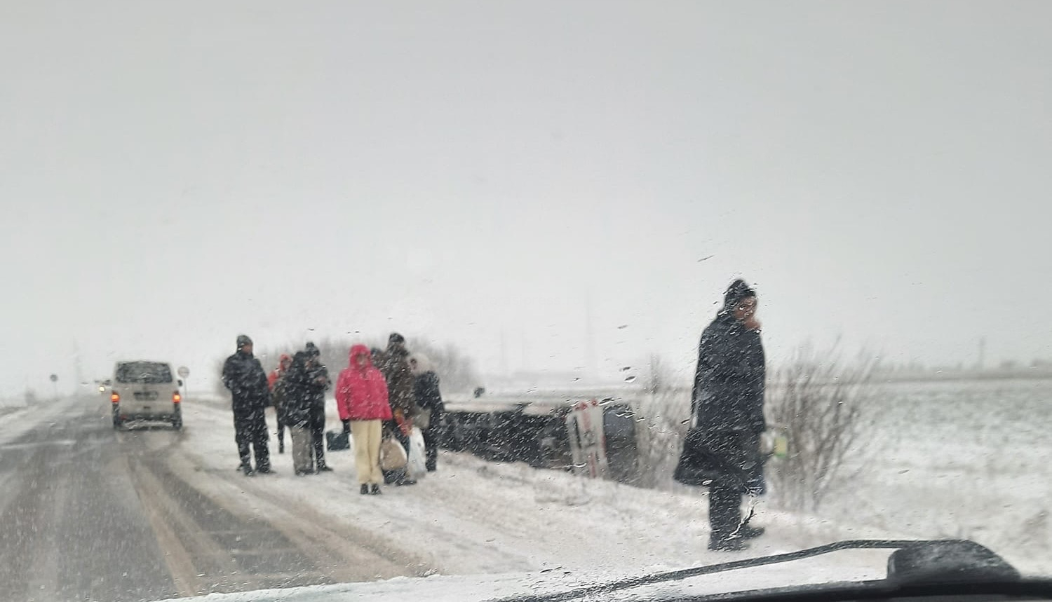 Revine iarna cu ninsori în județul Călărași. Un microbuz cu 10 persoane s-a răsturnat în Vlad Țepeș