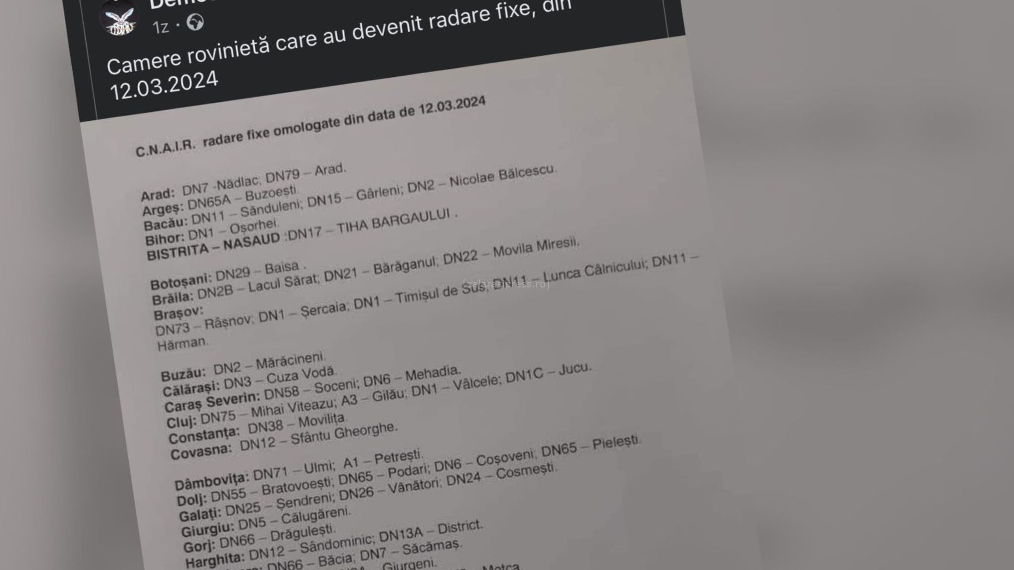 Roviniete sau radare fixe? Ce spune CNAIR despre “lista radarelor fixe”