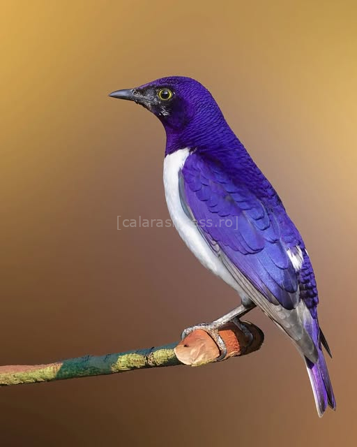 Violet-backed Starling (Cinnyricinclus leucogaster) este singura specie din genul Cinnyricinclus, o pasăre mică de 18 cm din familia Sturnidae. Descoperită în 1783 de Pieter Boddaert, impresionează prin dimorfismul sexual extrem: masculul are spatele violet-albastru iridescent, burta albă și ochi galbeni, în timp ce femela este maro-dungată, cu camuflaj perfect. Puii seamănă cu femela.