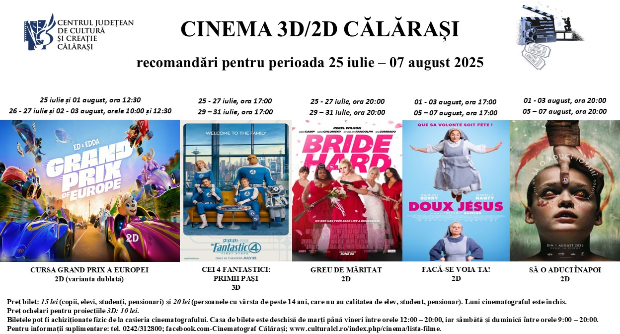 Vara filmelor începe la Cinema Călărași! Iată ce poți vedea în perioada 04 iulie – 07 august 2025