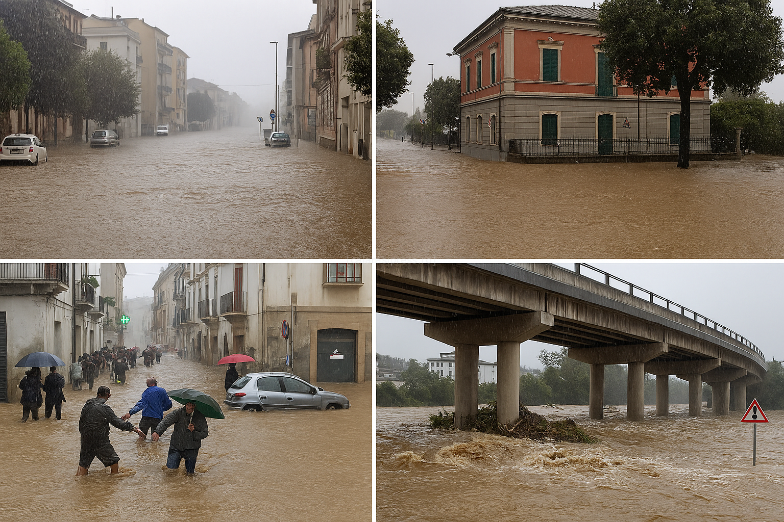 Calabria a fost lovită la fel de dur. Râurile au ieșit din matcă, iar podurile au cedat sub presiunea apelor. În unele zone, drumurile au fost complet măturate, lăsând în urmă doar cratere și bucăți de asfalt sfâșiate. Mii de familii au rămas fără acces la apă potabilă și electricitate, iar autoritățile au instalat centre temporare pentru cei evacuați.