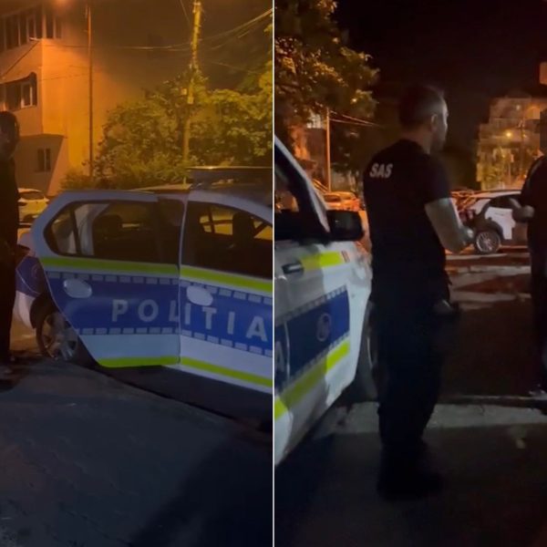 VIDEO. Bărbat luat pe sus de poliție după ce a pus mai mulți tineri să se pună în genunchi în fața lui
